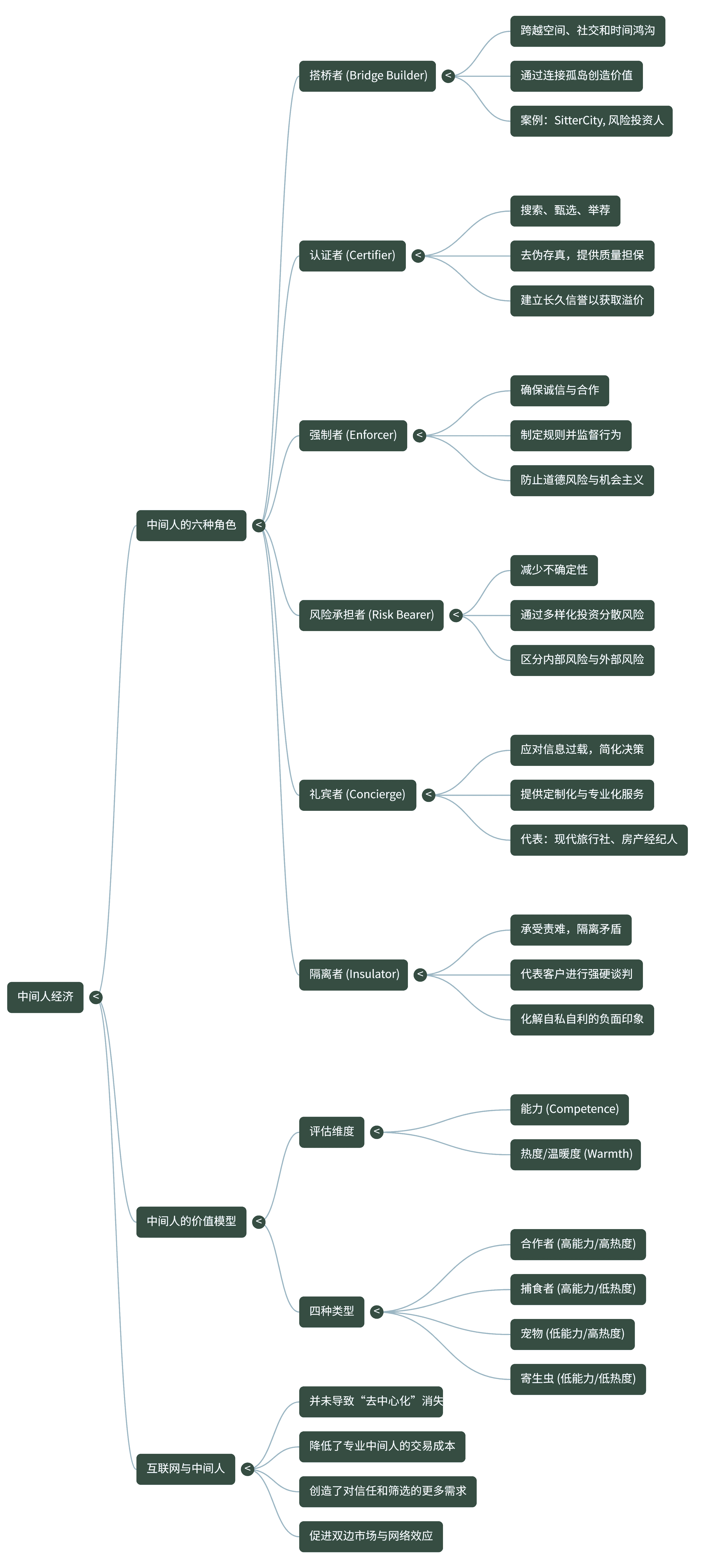 这三种角色本质上都在处理交易中的隐形成本。风险承担者通过“扛起波动”来交换利润,礼宾者通过“过滤复杂”来赢得信任,而隔离者则通过“遮挡责难”来保护名望。在互联网时代,虽然信息获取变得容易,但这三者在建立信任和协调复杂关系方面的价值反而比以往任何时候都更加不可替代。
